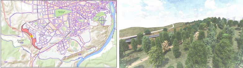 Transformación de una zona de bosques degradados y un solar abandonado en un bosque urbano (reforestación de la parcela degradada). Se recuperarán las pequeñas manchas de bosque existente (fundamentalmente encinar y alguna pequeña mancha de pinar) a través de tratamientos selvícolas. Se procederá a la plantación de especies autóctonas, representativas del entorno bioclimático, adaptadas los escenarios de cambio climático previstos: